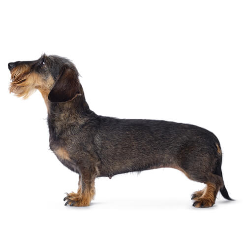 A fearless, elongated dog with a superior sense of smell, the Dachshund was bred in the 1600s in Germany to go to ground to rid farms of vermin. This lively breed is lovable, friendly and exceptionally playful, making him an ideal family pet. Dachshunds come in three coat varieties: Smooth, Wirehaired and Longhaired. They also can be standard size or miniature.