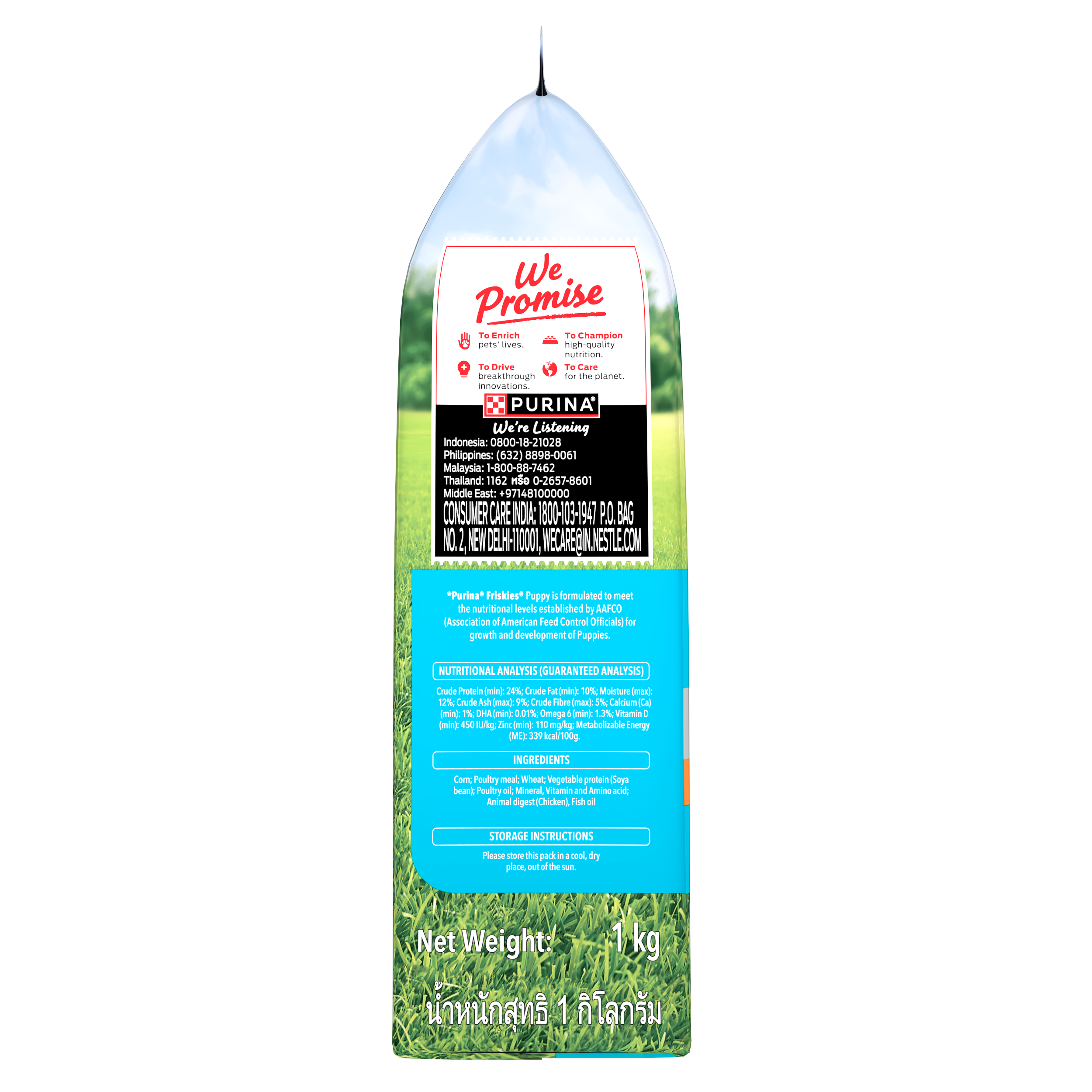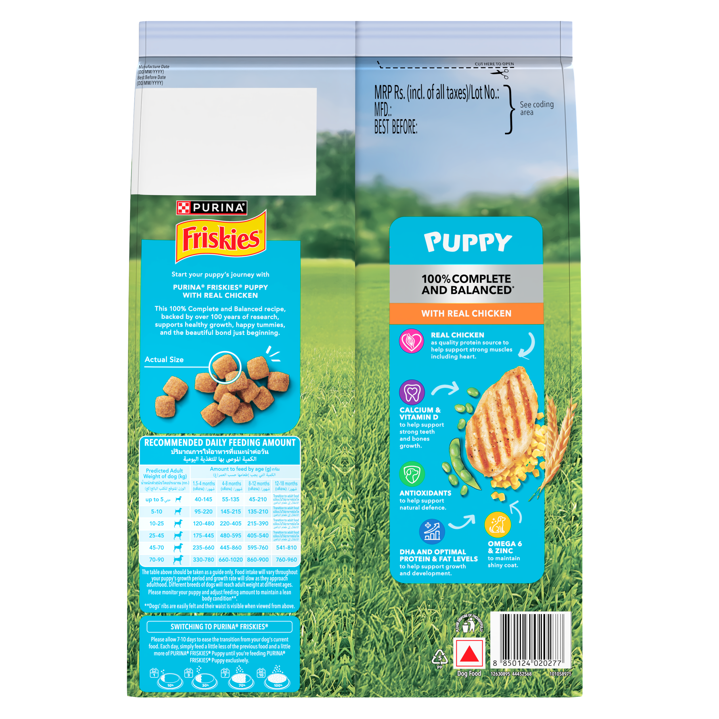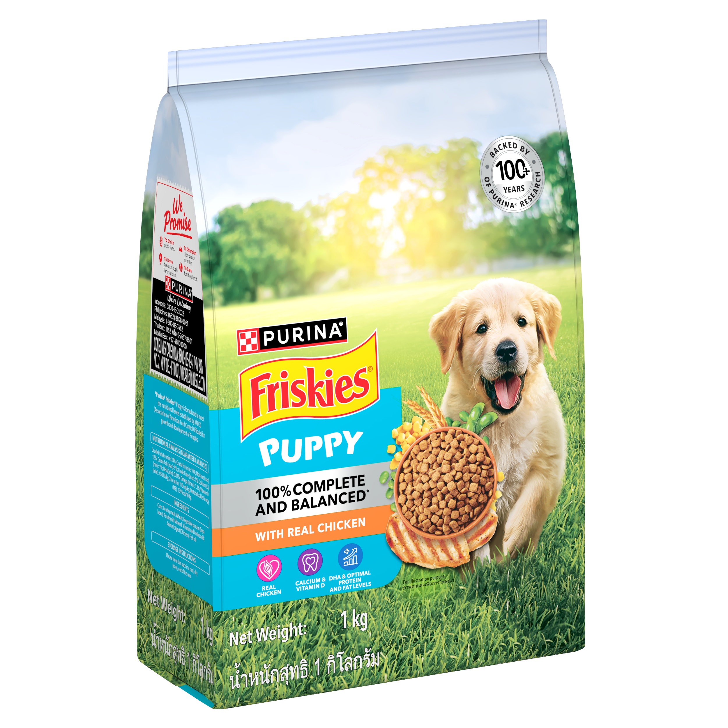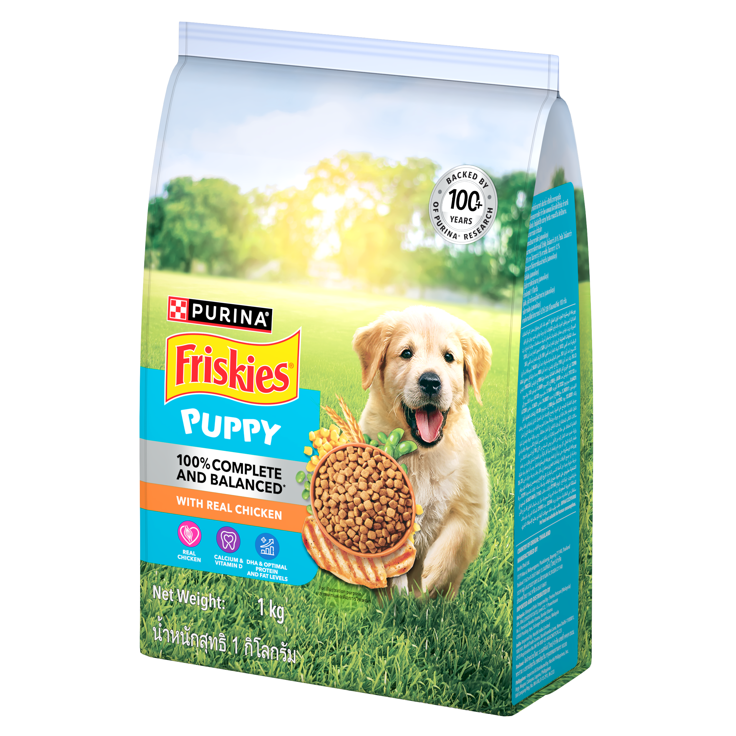 Give your dogs 100% Complete & Balanced Nutrition with Friskies Puppy with Real Chicken Flavor. 100% complete and balanced dry dog food for adult maintenance. Formulated by expert nutritionists and backed by over 100 years of Purina research, it delivers the nutrients adult dogs need to stay active—supporting strong muscles, healthy teeth and bones, skin and coat, and natural defences—so your dog can run, jump, chase, and thrive every day.