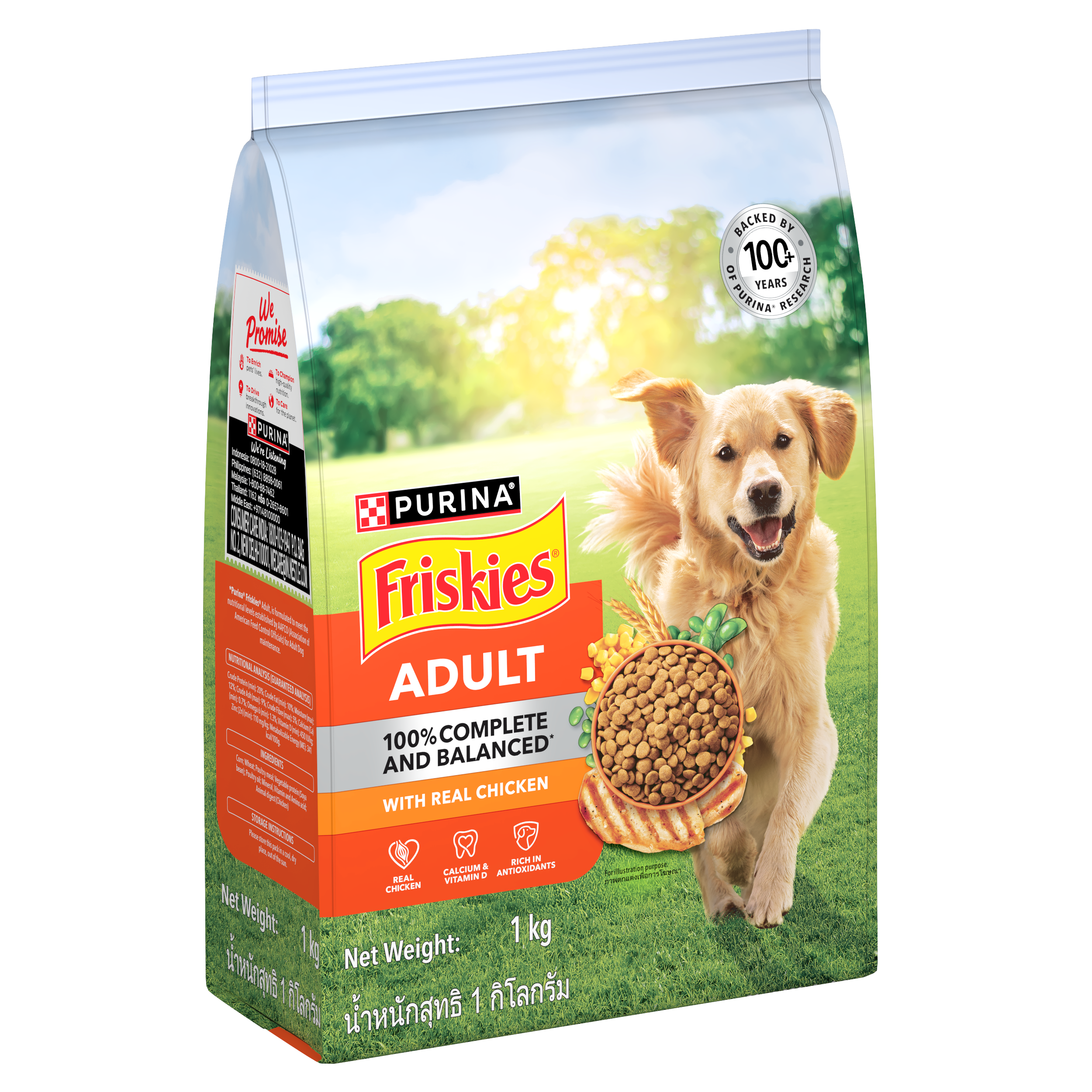 Formulated with real chicken and quality ingredients, Friskies food provides 100% complete and balanced nutrition. It helps support your dog's healthy vitality, strong muscles, bones, and strong natural defenses.
